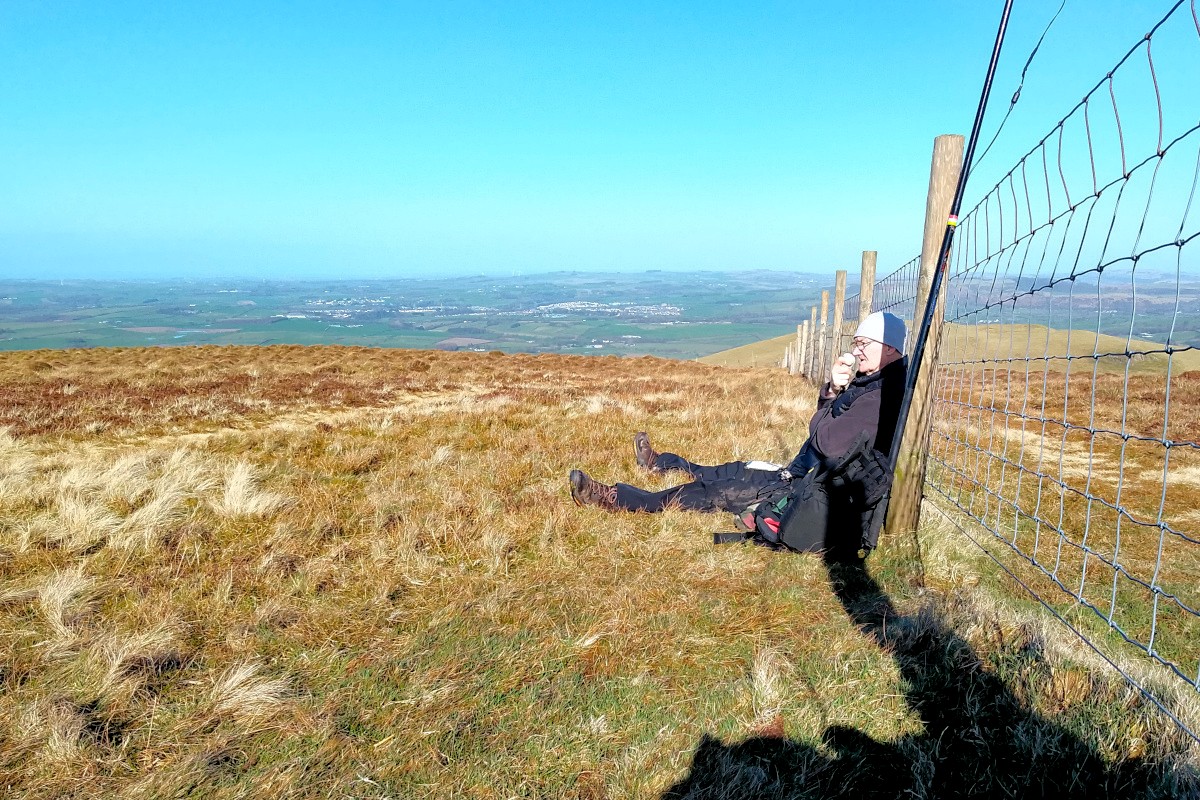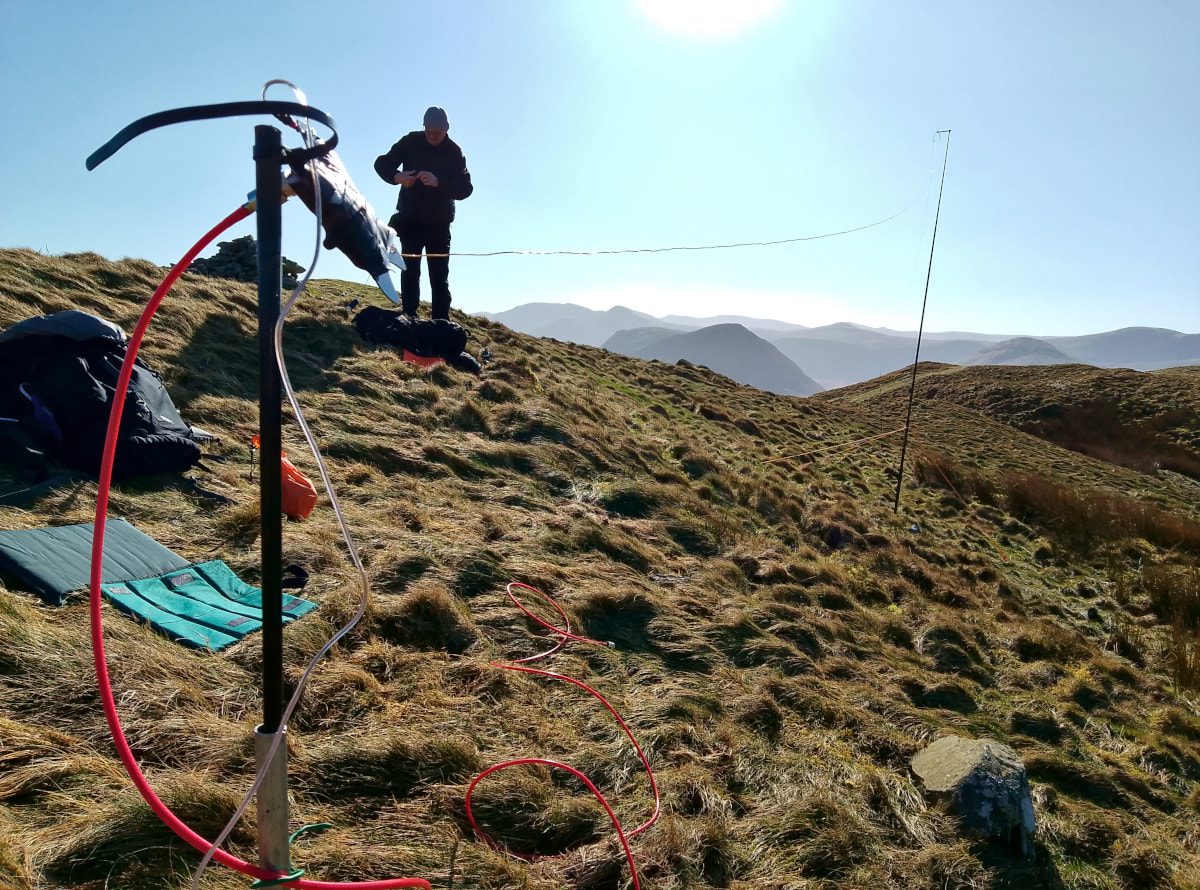 We arrived on schedule at the summit of Low Fell where Reg set up on 2m , and I’d decided just to do 40m here and set up the G90 and EFHW antenna .