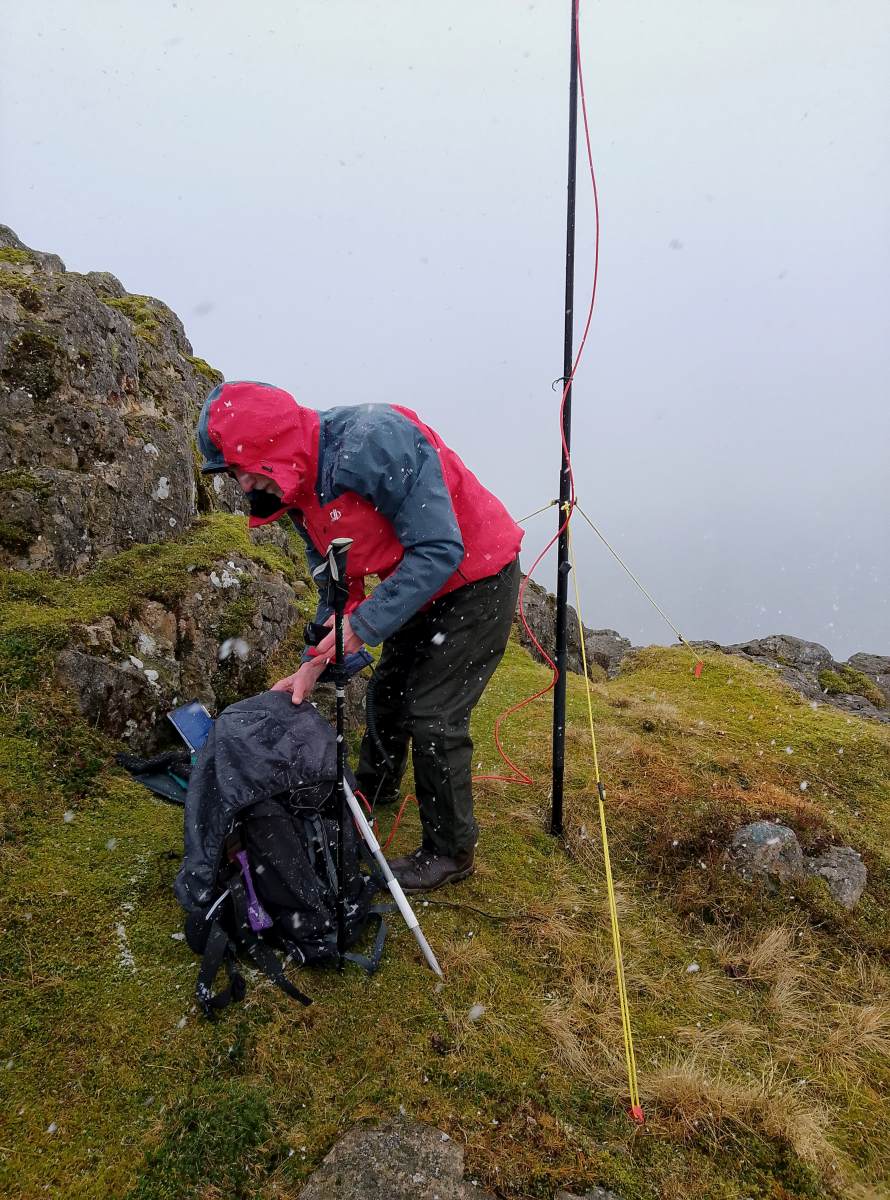 I’d just got the antenna down and radio bagged when the snow just stopped , so we had a cup of tea . Then the sun came out . To be fair we were not too cold the main problem , apart from my unfortunate timing , was the swirling snow finding a way round and into everything I had in place in an attempt to keep things dry . The walk up was OK, and the walk down was enjoyable , via the path down to Red Tarn then back to the car on Wrynose Pass . We’d not been out for a while and it was a new fell for us , so looking back , a good day with a few good contacts , although we did miss out on what I reckon would have been some great views from the summit .