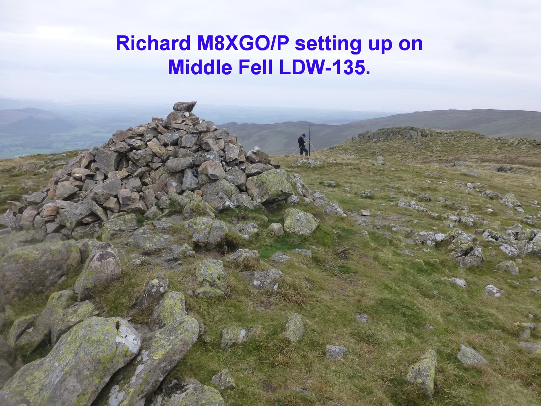 We set off walking at 0855hrs local and walked 1.39 miles to the summit of Middle Fell arriving at 1021hrs local. It is a steady climb steepish in places. After taking a few photos and video we setup operating and worked 8 stations in total.