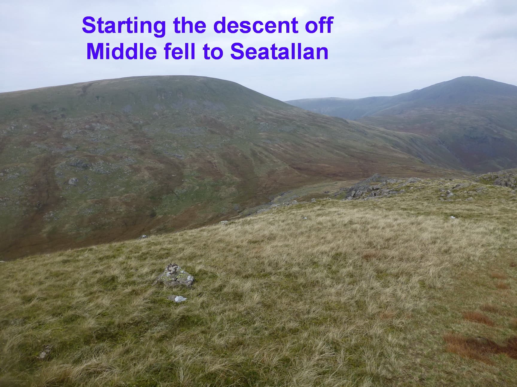 We left the summit at 1107hrs local and made the descent to the col between Middle fell and Seatallan. The bottom is usually very boggy when I have watched other peoples video of the route but today it felt like walking on a marshmallow which was a very good description by Richard!