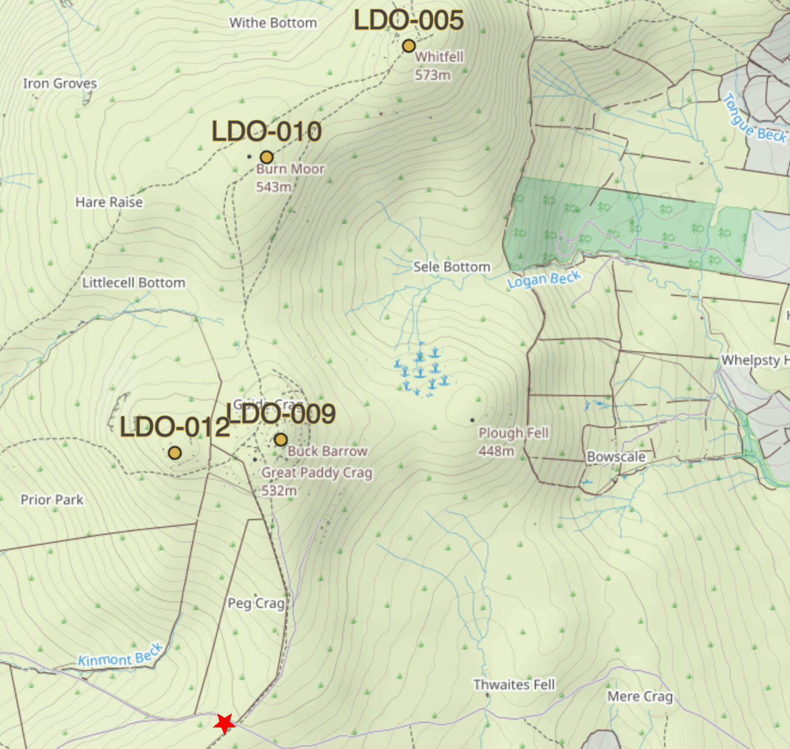 On the advice of Nick G0HIK, a native of these parts, I parked on Corney Fell Road (marked with the star). The plan today was to do a SOTA/WOTA activation of Whitfell and then the three other Wainwrights on the way back, and try and do 2m CW on each one. It was about an hour and 20 mins to reach Whitfell from the parking position.