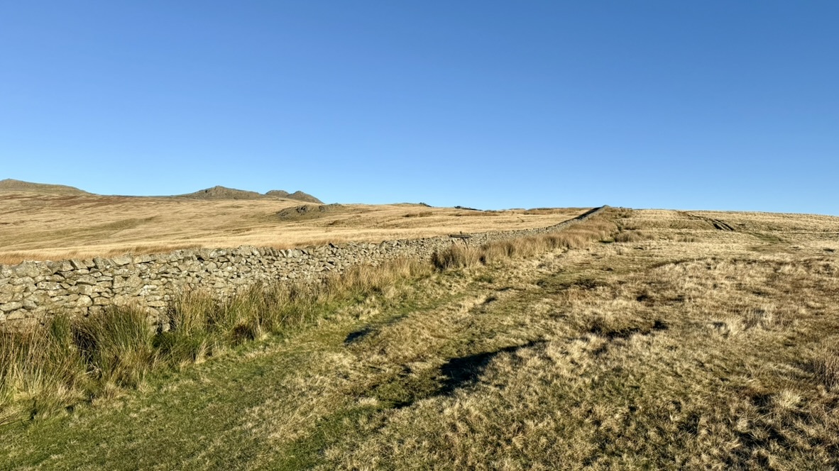 There is a wall in the way when traversing between these two summits, but there is a gate that can be used. When traversing back from Kinmont Buck Barrow to the wall that leads back to the cars the path is a lot more obvious.